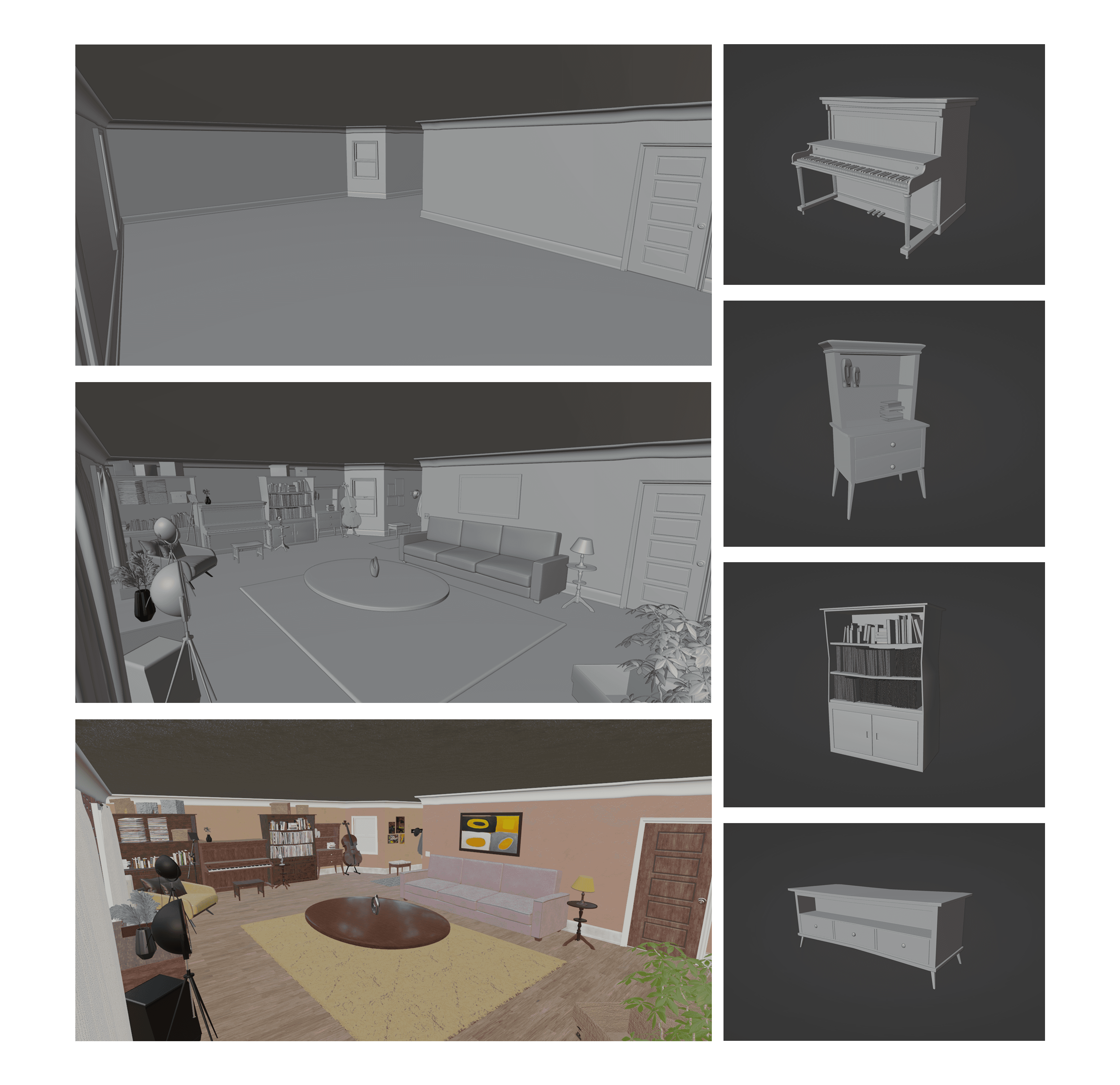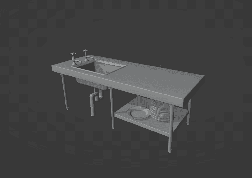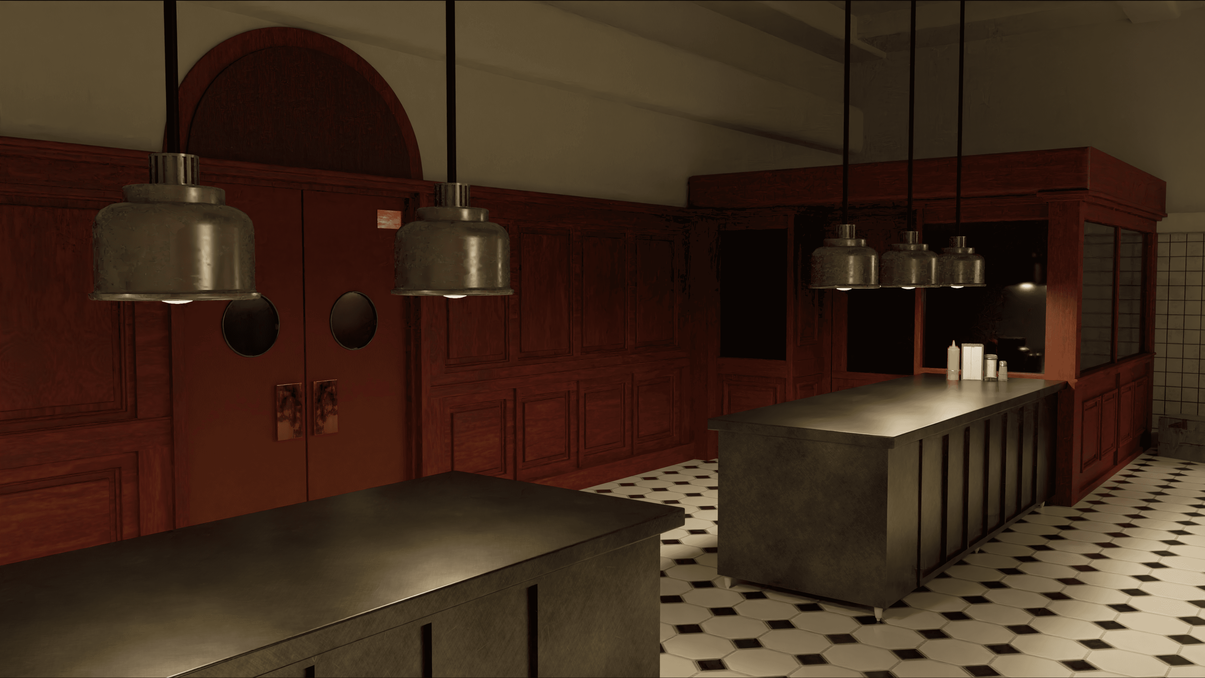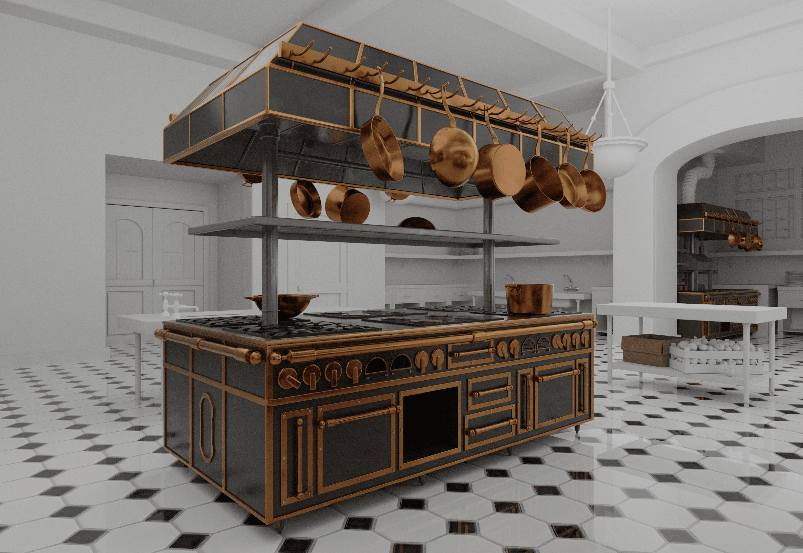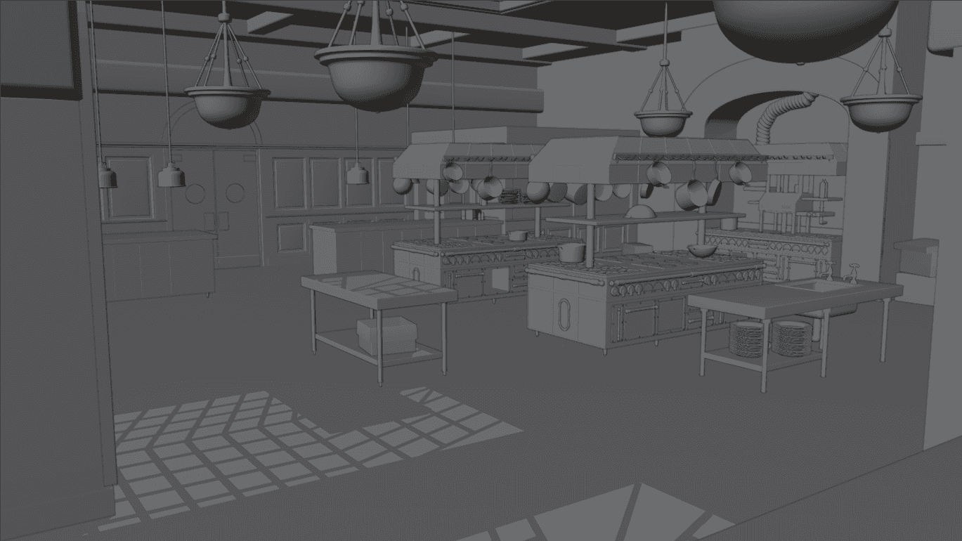 The kitchen included metallic and rustic textures, realistic cooking tools, and layered details that made it feel like a fully functional kitchen.