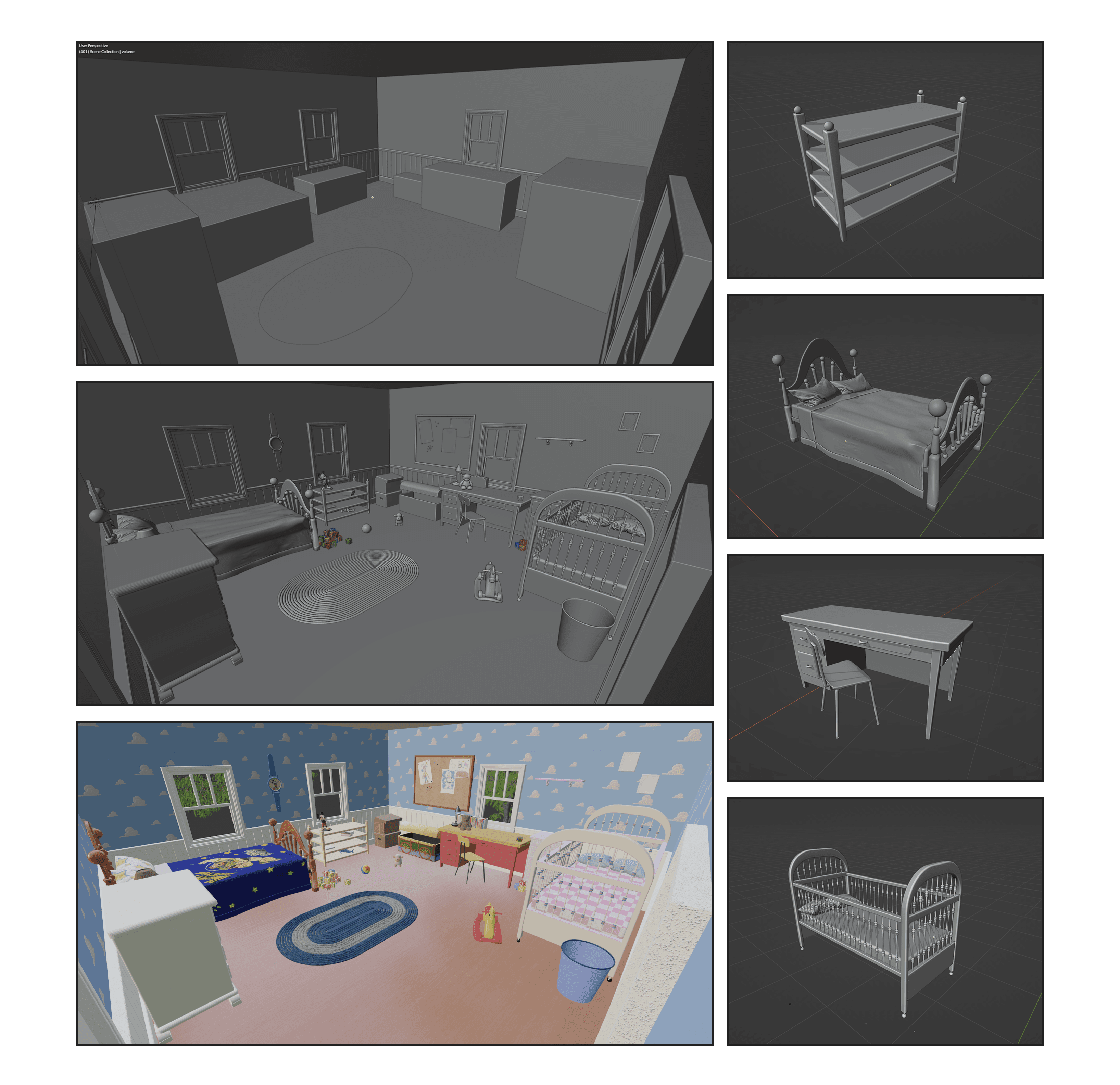 Here's a compilation of my study of Pixar's iconic masterpieces. These are part of a larger VR experience/gaming concept where you go through Pixar's entire filmography, chronologically, experiencing the technological and creative growth in the style of 3d modeling and animation.